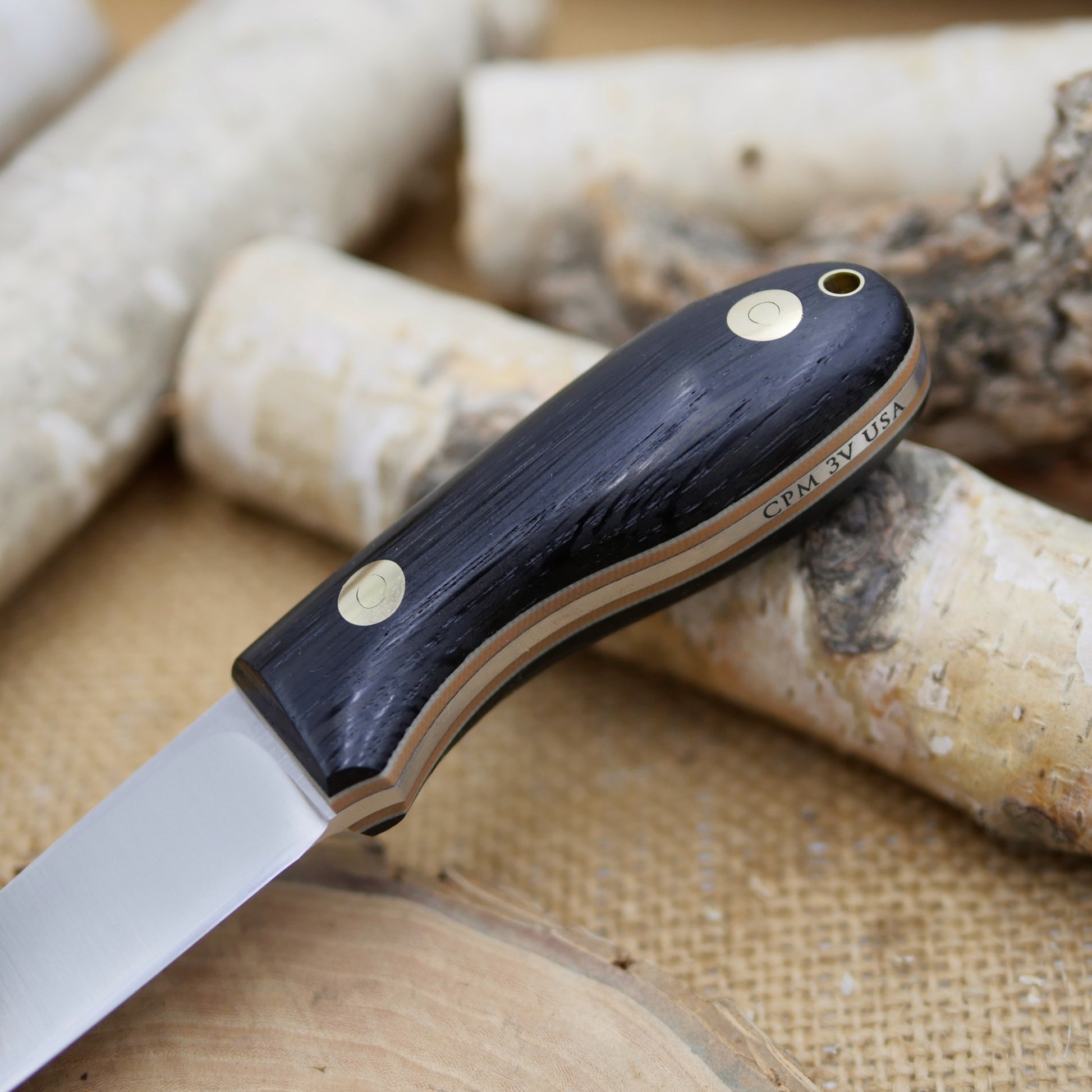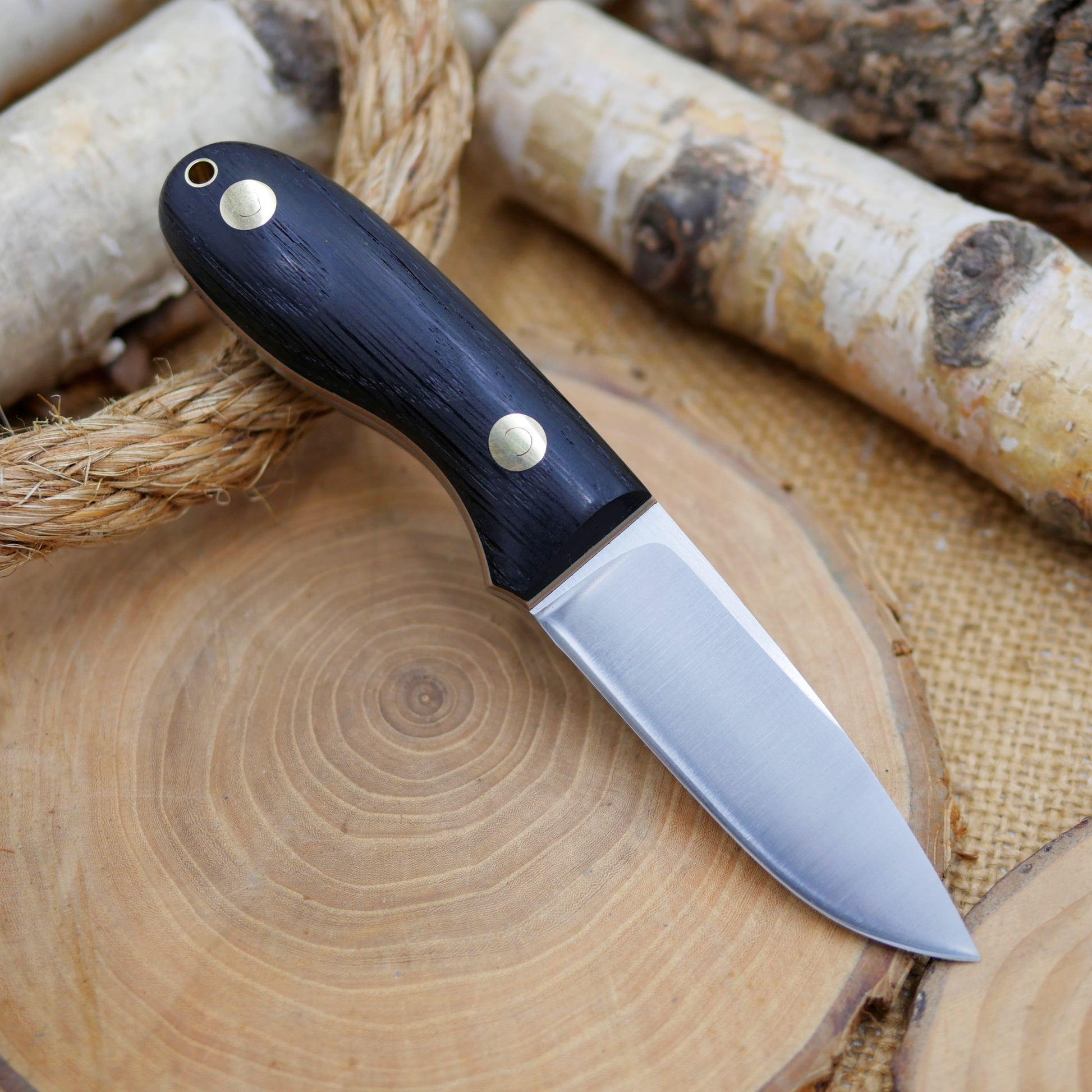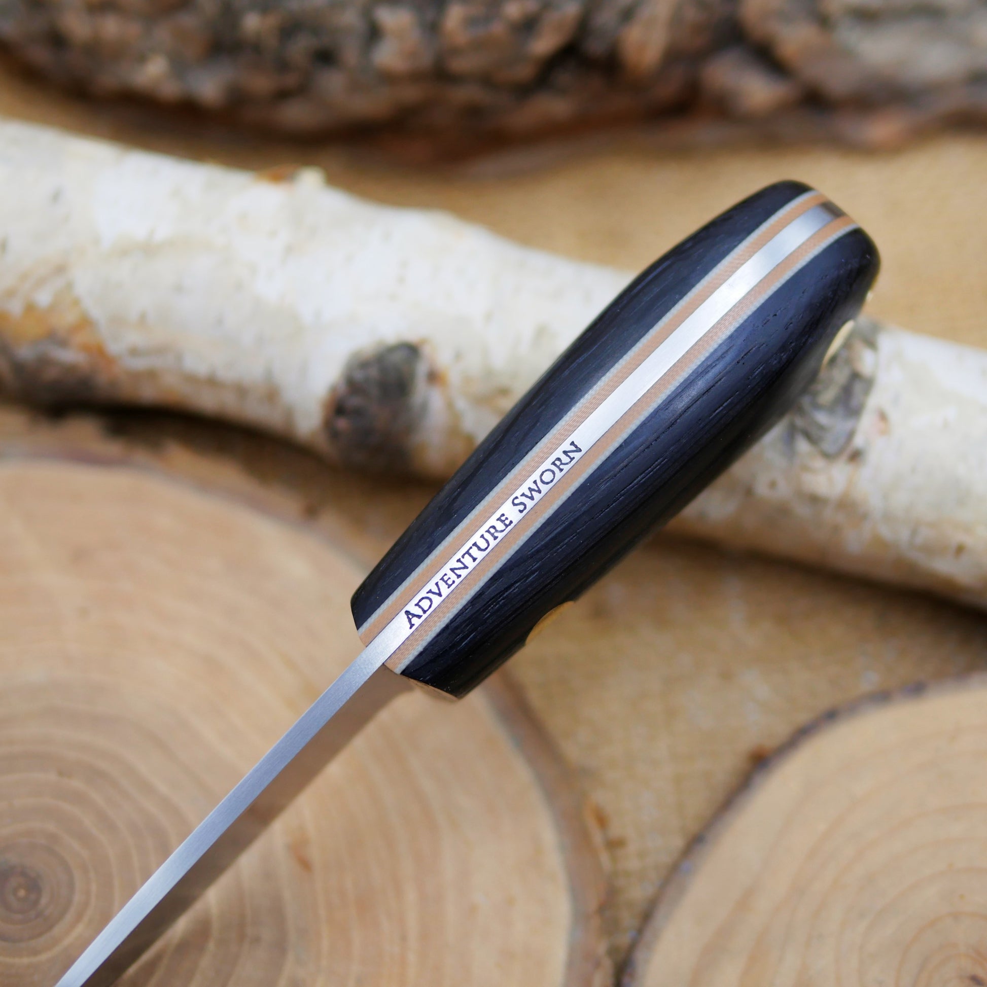 The Nomad is the Walker's drop-point, convex cousin, geared more towards slicing, food prep, hunting, and every day utility chores. The Nomad is the perfect lightweight, compact bushcraft knife for those who prefer a convex ground edge. It features the same full handle shape & teardrop contour as the Walker, comfortable in any grip for hours on end.