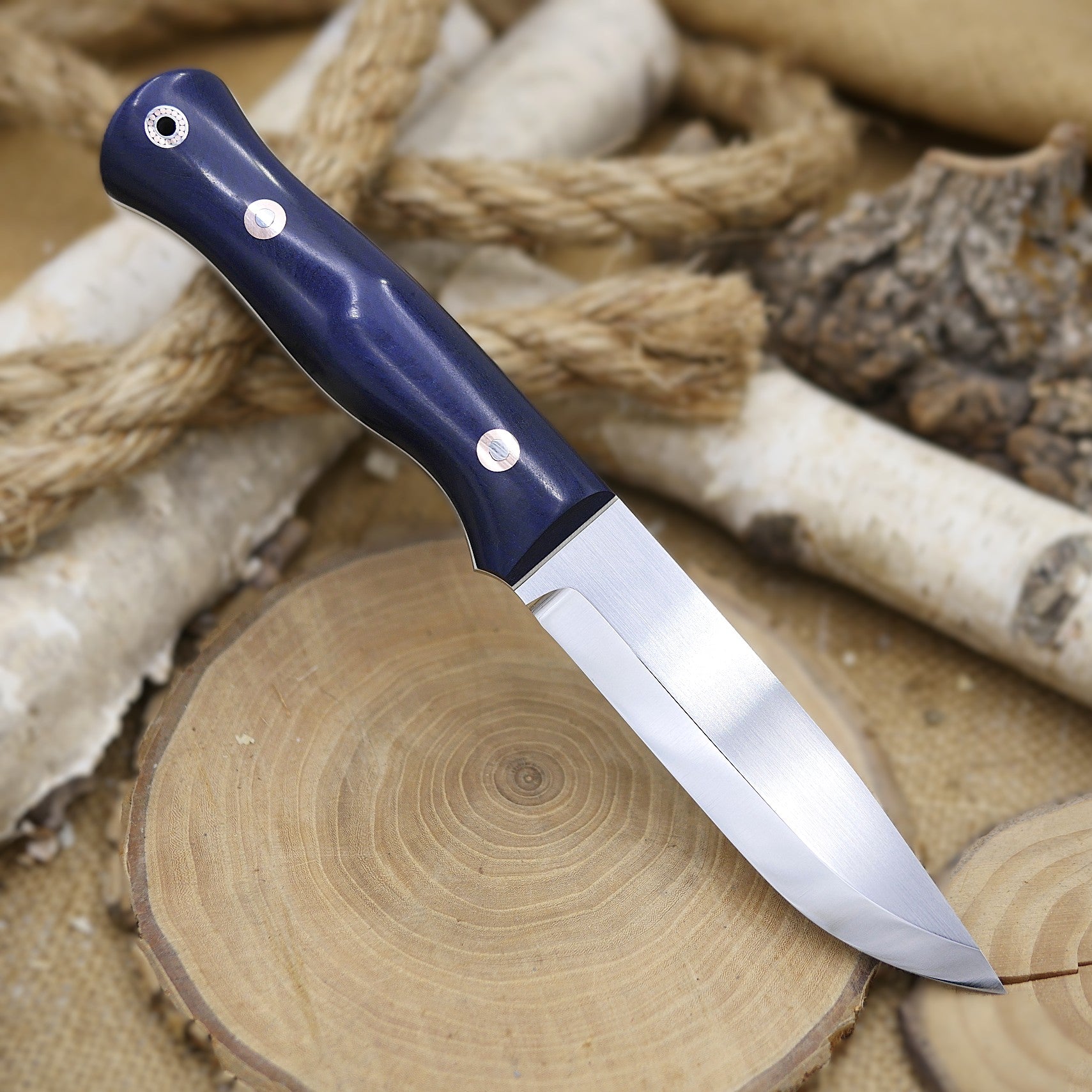 The Explorer is a versatile general-use bushcraft knife. It is the first knife Cody designed and remains one of the most requested models. The blade is long enough for batonning through wood logs and slicing food, but is also short enough for controlled woodworking. The rugged drop-point blade shape has a little more blade "belly" than the Mountaineer. Paired with the ergonomic coke bottle contoured handle, this knife is a well-rounded knife which is excellent for use in the wilderness.