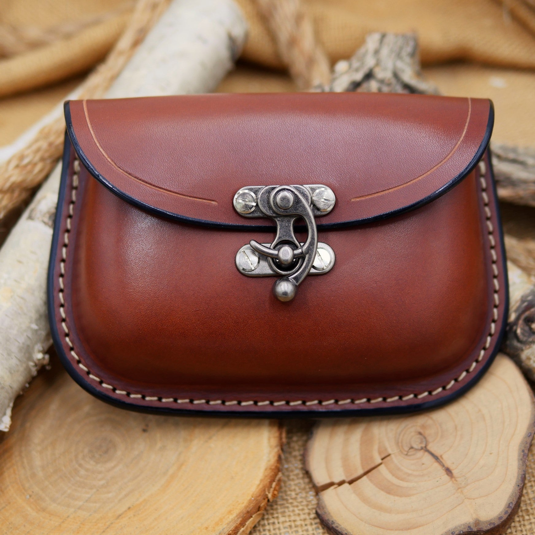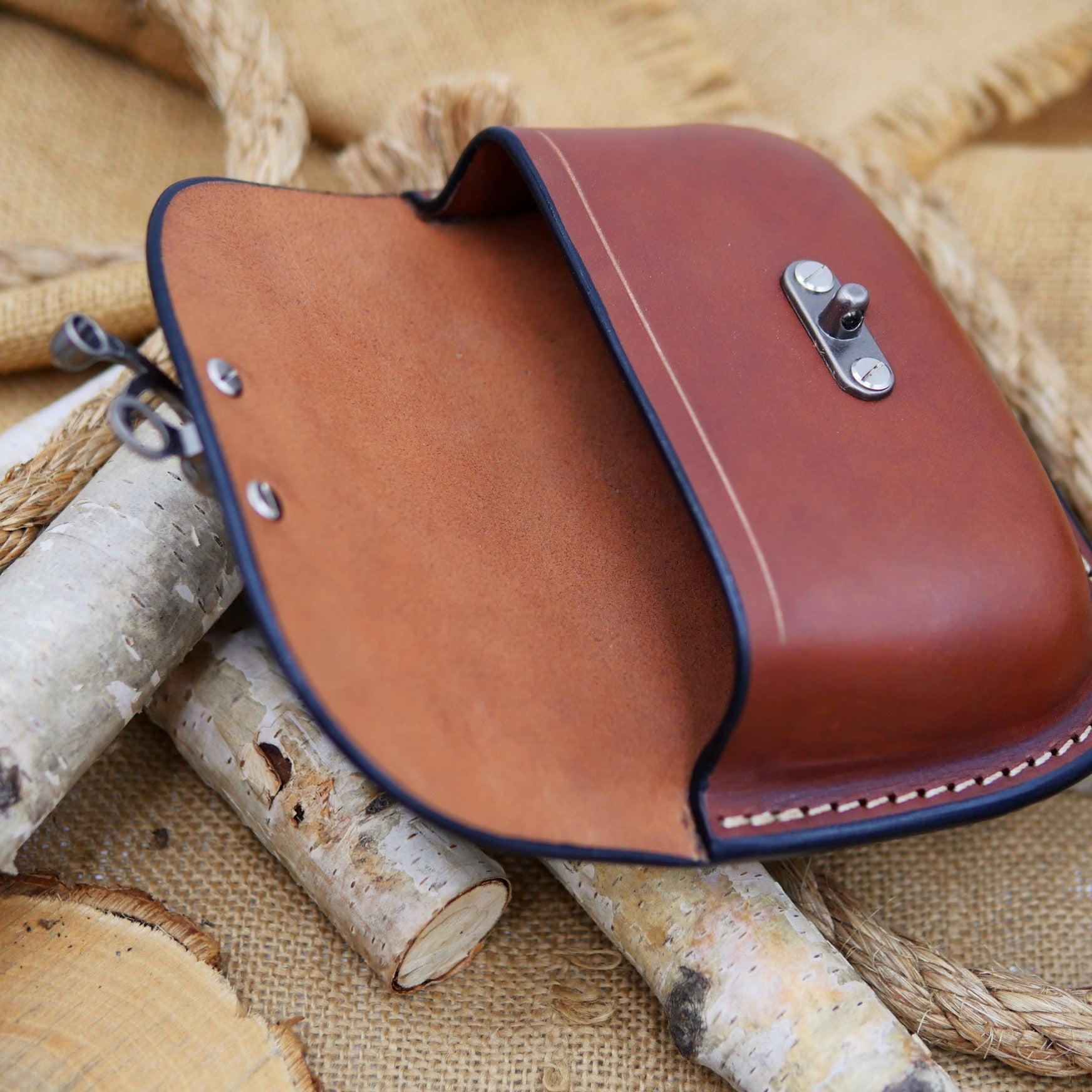 This is the Traveler's Pouch. Handmade by Amber in the knife shop, designed to be a general-purpose possibles pouch. We probably made around a dozen of these, including this one, as they proved to be a bit time consuming to produce.